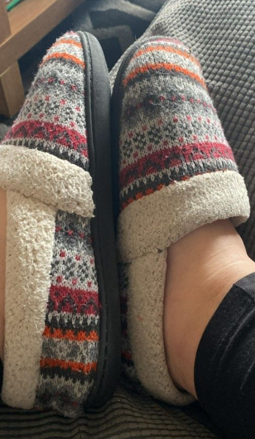 So so so comfortable from the very first time I put them on! I didn't want a structured slipper so I thought these were excellent! Sturdy sole so I can walk out to the mail and also comfy and warm for indoors. They did stretch quite a bit in the week I've had them so I am very glad I ordered a size smaller than I normally wear! Will be buying again for sure!